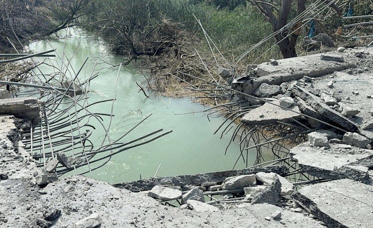 جسر القاسمية المتضرر فوق نهر الليطاني، غداة تعرضه لضربة إسرائيلية في جنوب لبنان يوم الأربعاء- 19 مارس 2026.