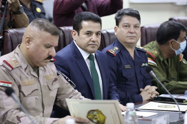 مستشار الأمن القومي العراقي قاسم الأعرجي في اجتماع مع قادة القوات الأمريكية وقادة التحالف في بغداد، العراق، في 9 كانون الأول/ديسمبر 2021.