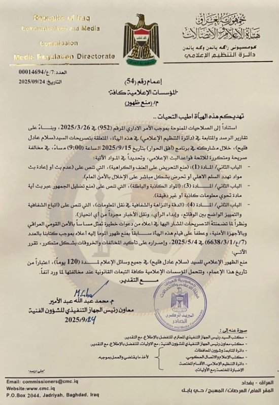 وجه رئيس الوزراء، محمد شياع السوداني، اليوم الثلاثاء، بإعلان مظاهر الاحتفال باليوم الوطني العراقي بجميع الوزارات ورفع العلم العراقي.