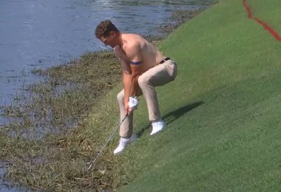 زاد الطين بلة.. لاعب غولف يخلع قميصه في موقف محرج (فيديو)