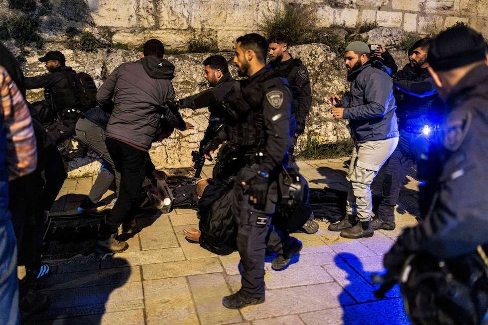 قوات شرطة الاحتلال الإسرائيلي تعتدي على المصلين في محيط المسجد الأقصى، مساء الثلاثاء