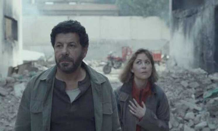 صُوّر مسلسل “صحاب الأرض” الذي لا يزال متاحا على منصات البث، في استوديو صُمم الديكور فيه ليحاكي الوضع في القطاع الفلسطيني المدمر: مبانٍ مُحترقة، وخيام متهالكة، ومستشفيات مكتظة، وسط دويّ الطائرات المسيَّرة الذي لا ينقطع.
