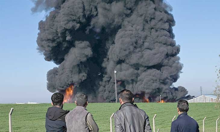 وفي السياق، شُنت سلسلة هجمات بطائرات مسيرة على مستودع لزيوت السيارات في أربيل، متسببة باندلاع حريق هائل، مما أجبر الفرق على الانسحاب من موقع الحادث.